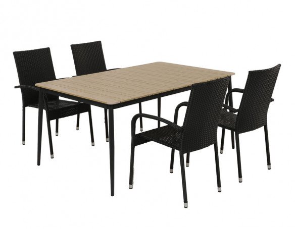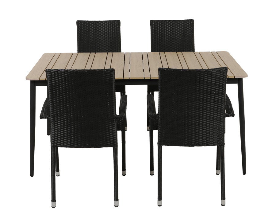 Dette havesæt består af Malmø havebordet og 4 Malmø havestole, som tilsammen skaber en stilren og funktionel spiseplads til terrassen eller altanen. Bordet har et solidt aluminiumsstel med mørkegrå pulverlakering og en bordplade i nonwood/polywood i en naturlig træfarve, som giver et varmt udtryk og kræver minimal vedligeholdelse. Med en længde på 160 cm...