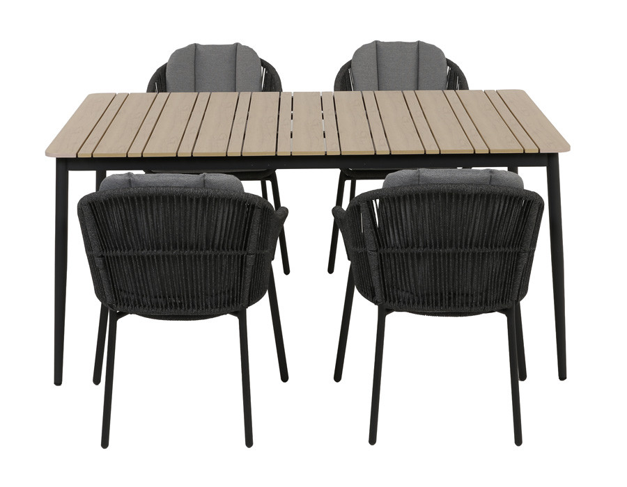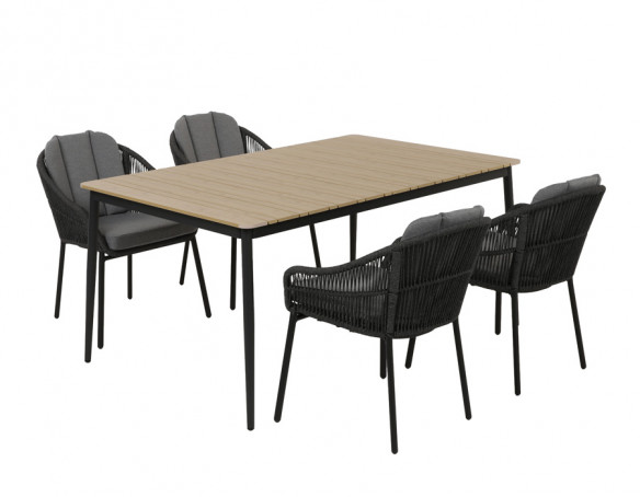 Dette havesæt består af Malmø havebordet og 4 Malmø positionsstole, som tilsammen skaber en stilren og fleksibel spiseplads til terrassen eller altanen. Bordet har et solidt aluminiumsstel med mørkegrå pulverlakering og en bordplade i nonwood/polywood i naturlig træfarve, som giver et varmt udtryk og kræver minimal vedligeholdelse. Med en længde på 160 cm...