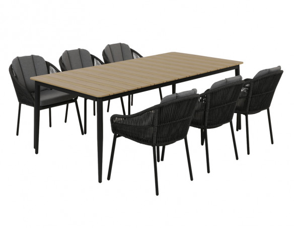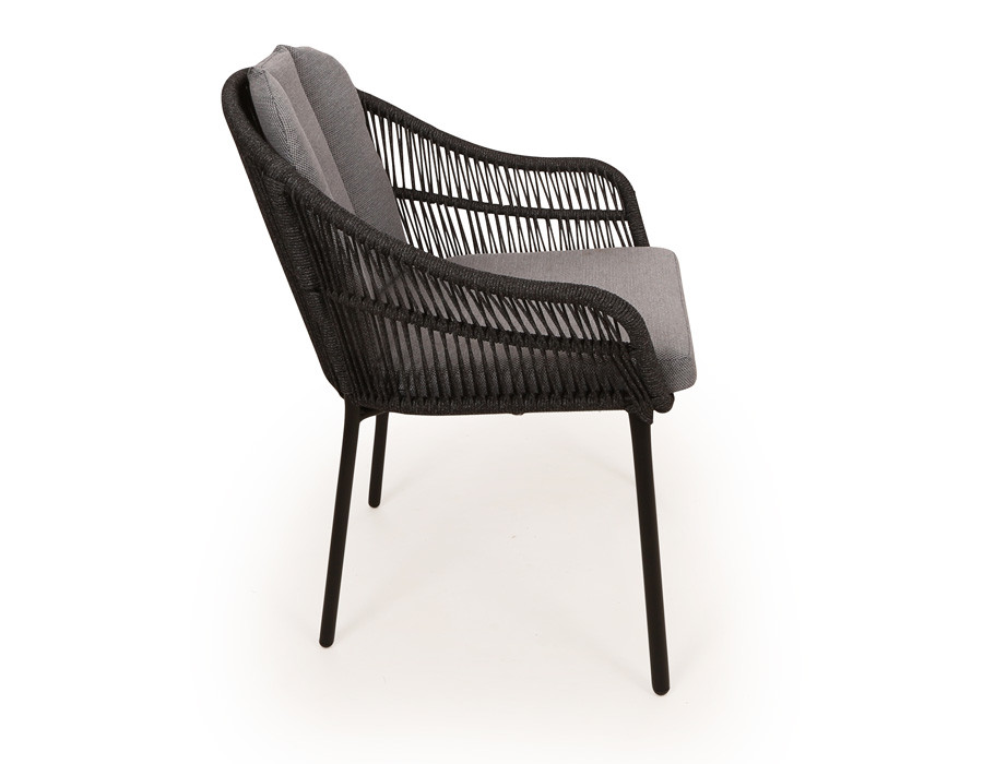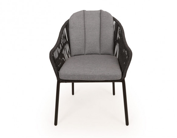 Superflot og stilregn stabelstol med et stel lavet af aluminium. Ryglænet og sædet er konstrueret af flettet reb i 100% antracitgrå polyester, hvilket giver et let og elegant udtryk.
