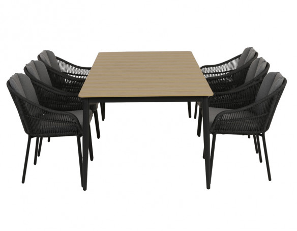 Bordpladen i nonwood/polywood i naturlig træfarve skaber en flot...
