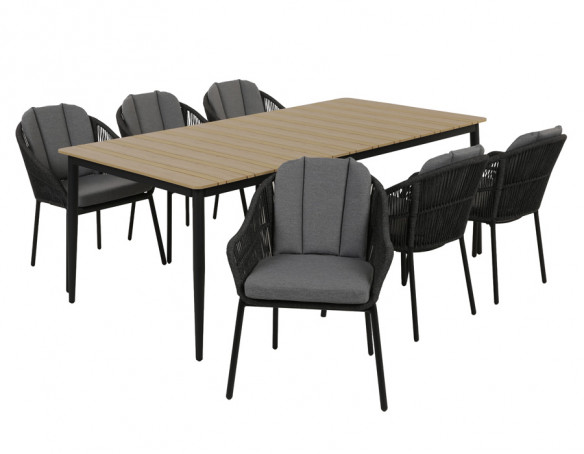 Dette havesæt består af Malmø udtræksbordet og 4 elegante havestole, som tilsammen skaber en stilren og komfortabel spiseplads til terrassen eller haven. Bordet har et solidt aluminiumsstel i mørkegrå pulverlakering og en bordplade i nonwood/polywood i naturlig træfarve, som giver et varmt udtryk og kræver minimal vedligeholdelse. Med udtræk kan bordet...