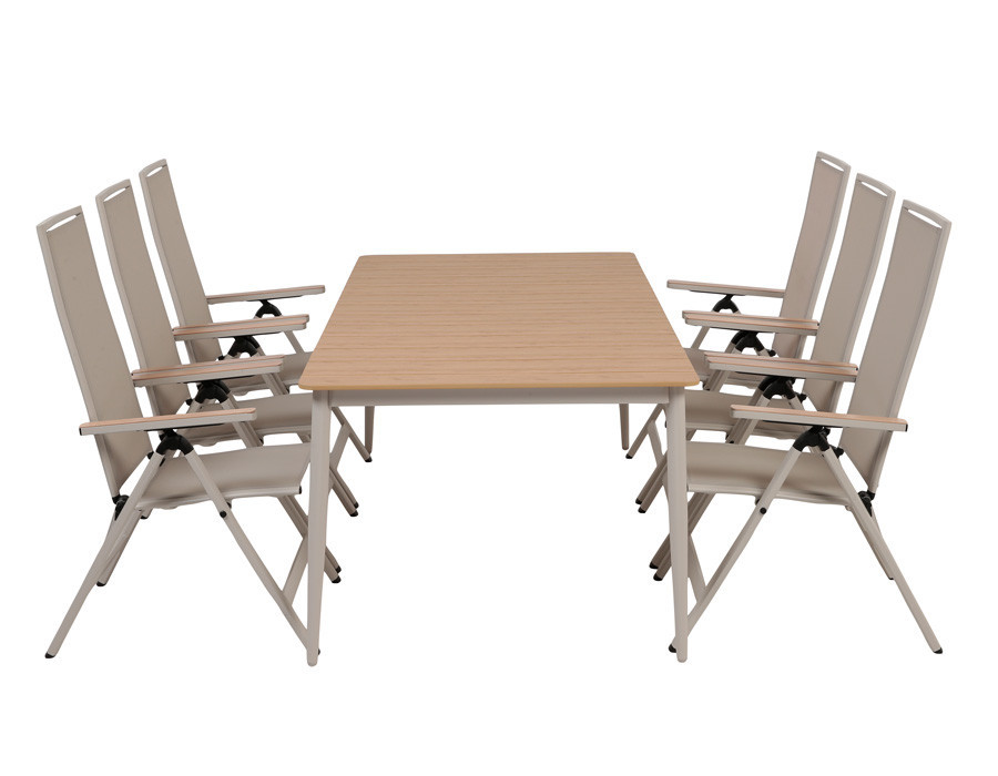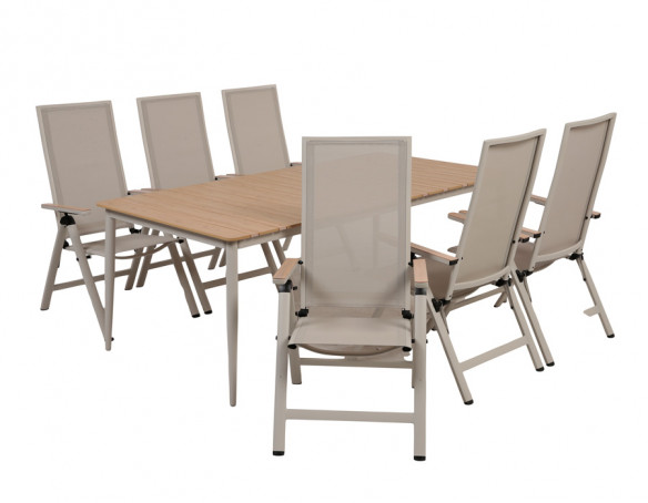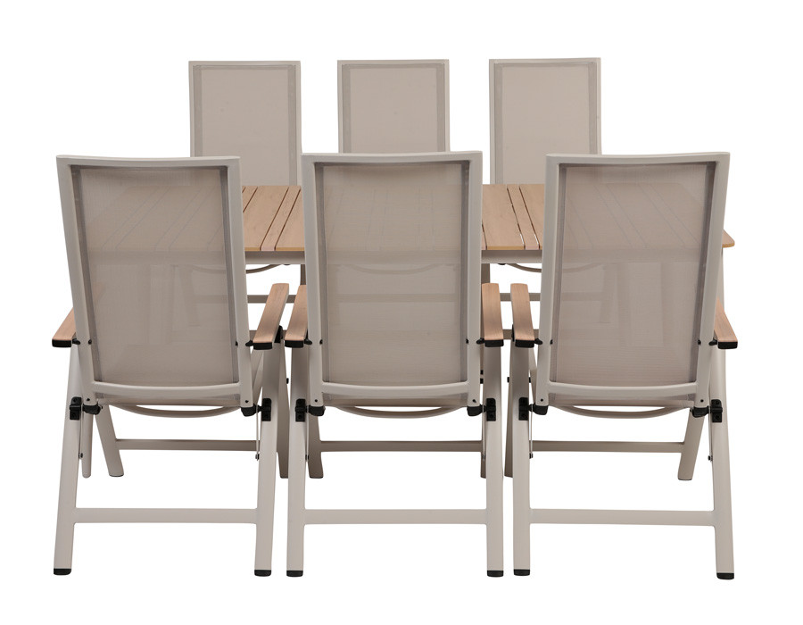 Armlænene i nonwood har et flot trælook, der tilfører designet et varmt og elegant præg. Ryglænet kan indstilles i 6 positioner, så stolen nemt tilpasses både måltider ved...