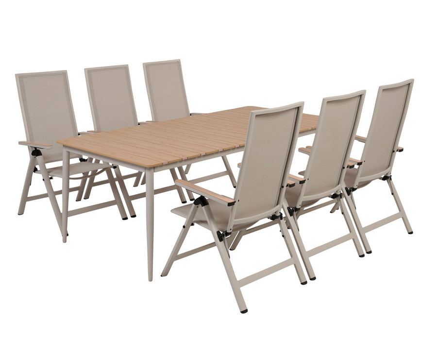 Malmø havebordet er et moderne og praktisk bord, der passer perfekt til både hverdagens måltider og hyggelige sammenkomster på terrassen. Bordet står på et solidt aluminiumsstel med gråhvid pulverlakering, som gør det velegnet til udendørs brug og modstandsdygtigt over for vind og vejr. Bordpladen er fremstillet i nonwood/polywood i en naturlig træfarve,...