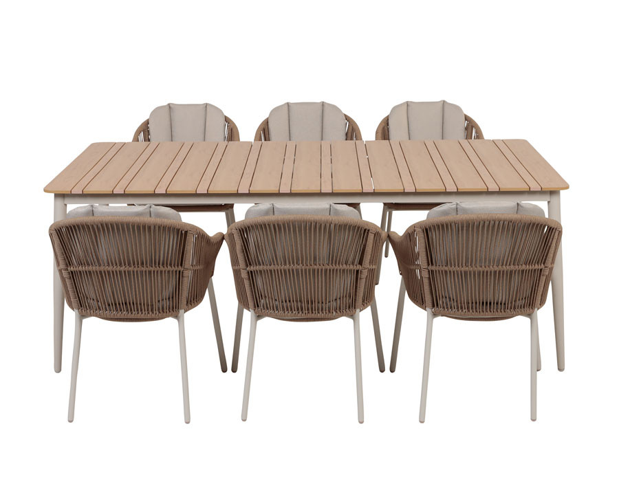 Malmø havebordet er et moderne og praktisk bord, der passer perfekt til både hverdagens måltider og hyggelige sammenkomster på terrassen. Bordet står på et solidt aluminiumsstel med gråhvid pulverlakering, som gør det velegnet til udendørs brug og modstandsdygtigt over for vind og vejr. Bordpladen er fremstillet i nonwood/polywood i en naturlig træfarve,...
