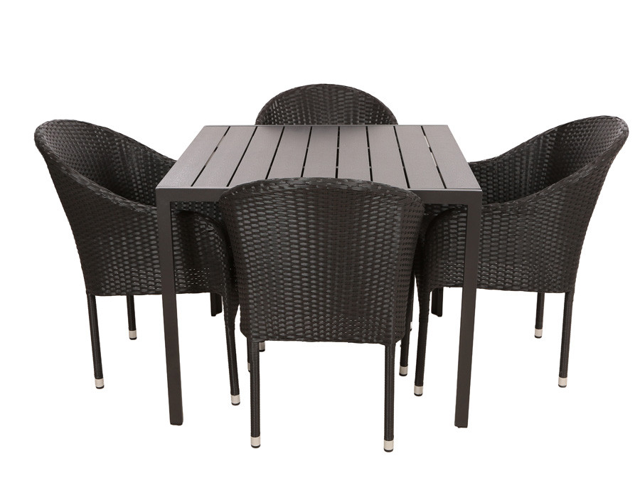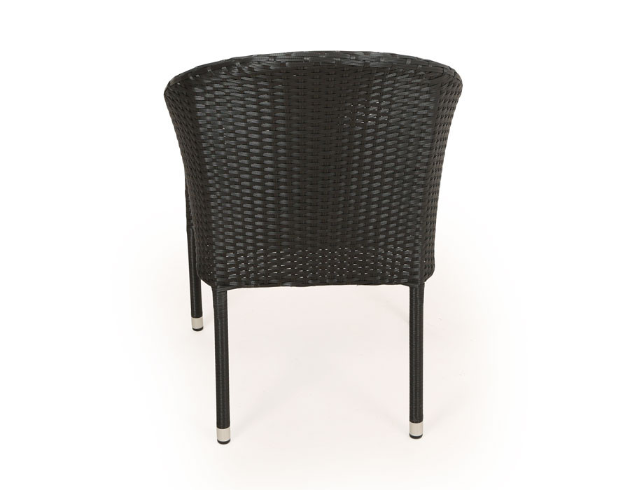 Elegant havestol med en solid stålramme og slidstærkt sort polyrattan-flet, der kombinerer holdbarhed med et tidløst design.