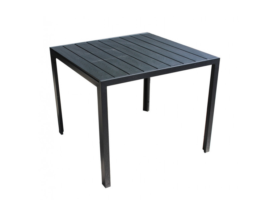 Super lækkert bord med kraftig bordplade i sort nonwood. Aluminiumsstel.Mål:90x90 cm. Højde: 74,5 cm.