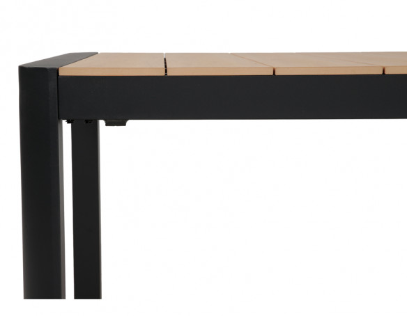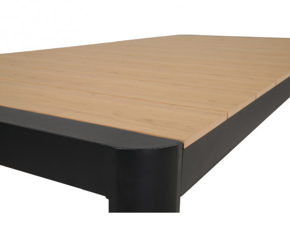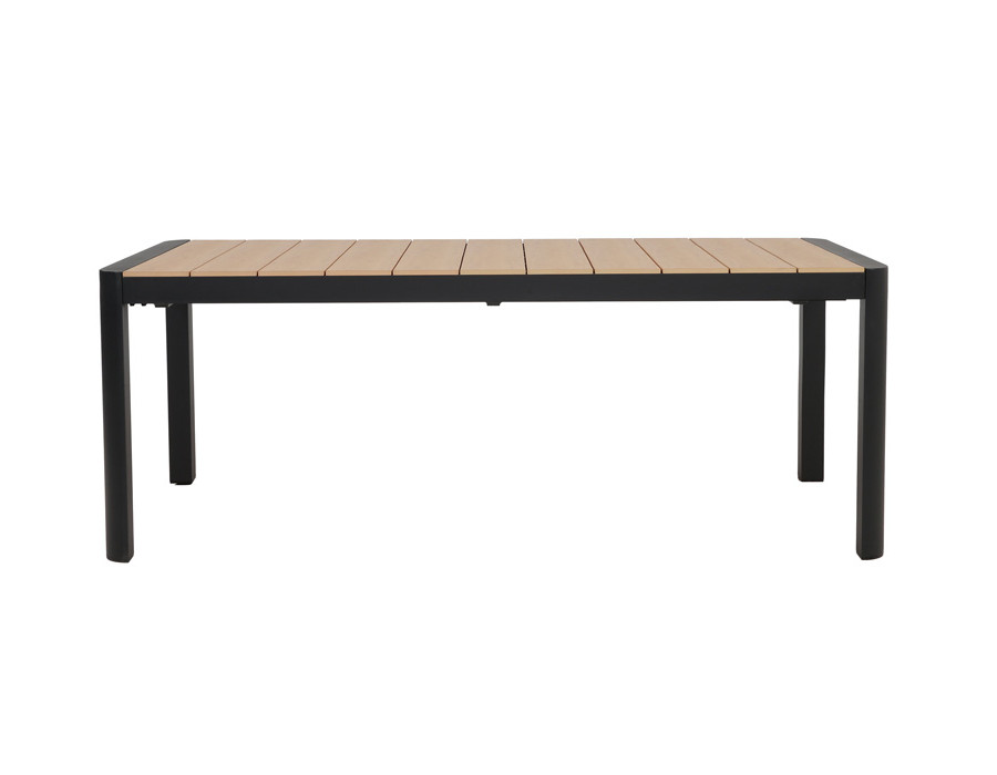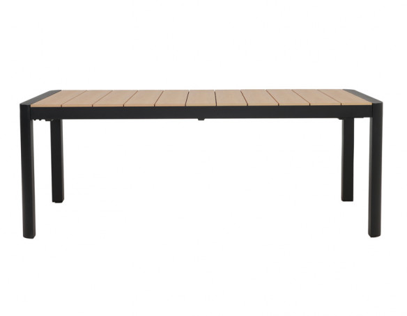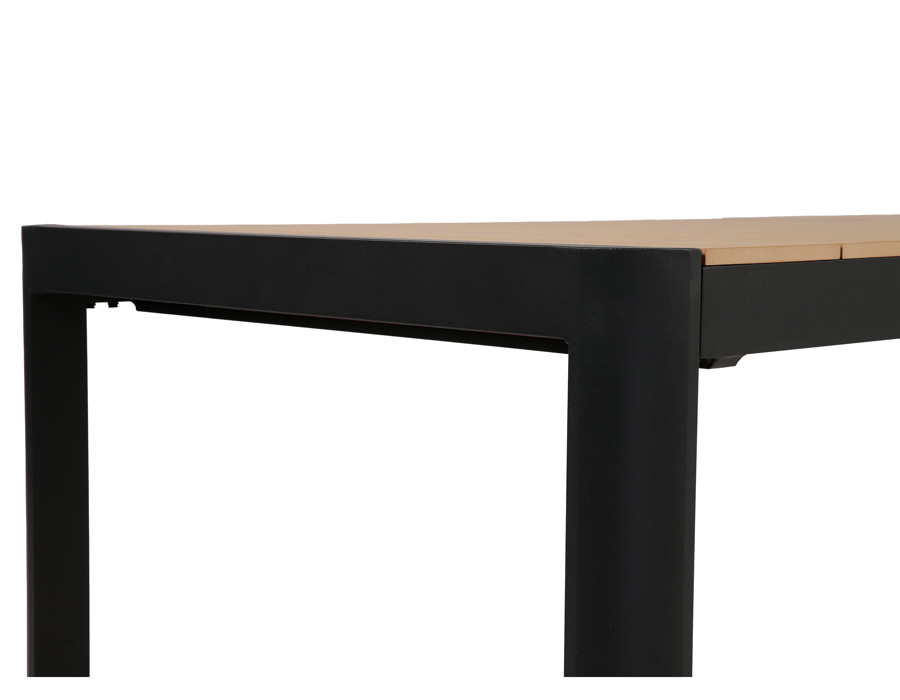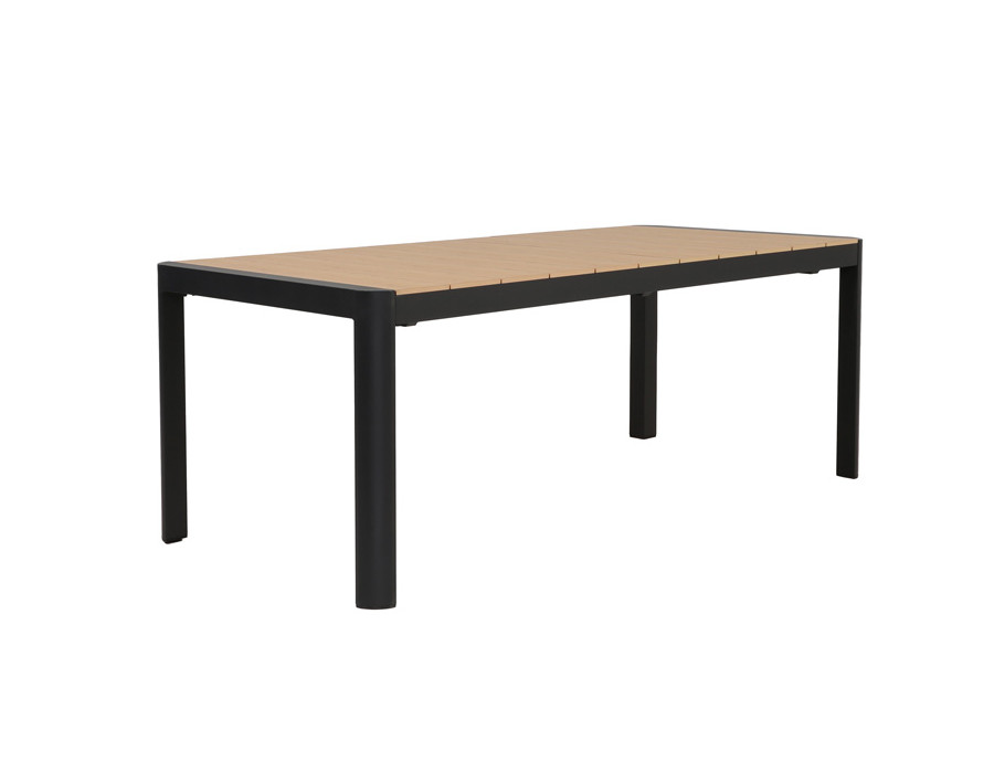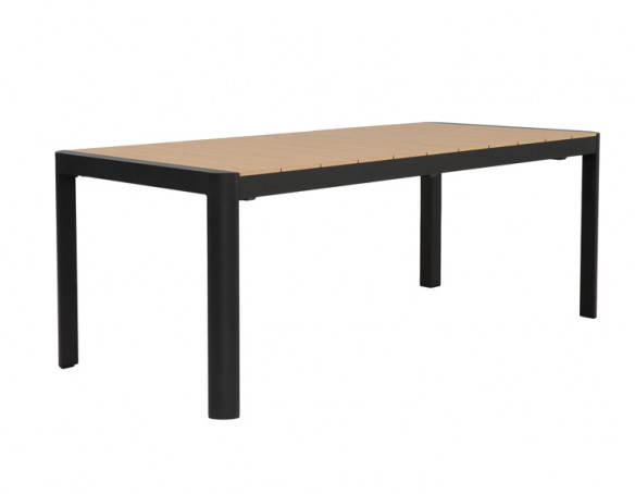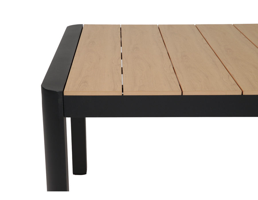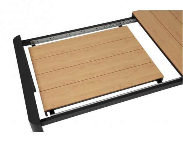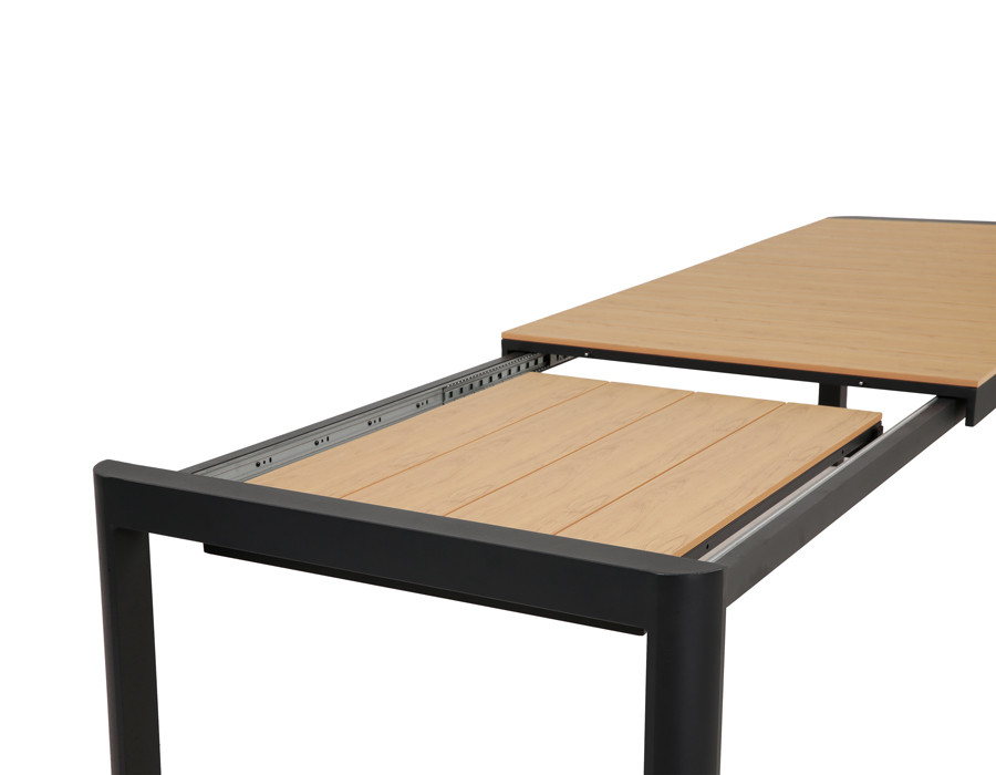 Dette udtrækshavebord kombinerer et stilrent, moderne design med praktisk fleksibilitet til uderummet. Bordet har et robust stel i mørkegrå aluminium, der giver et roligt og eksklusivt udtryk, mens bordpladen i nonwood tilfører varme og gør bordet nemt at matche med både lyse og mørke havestole.