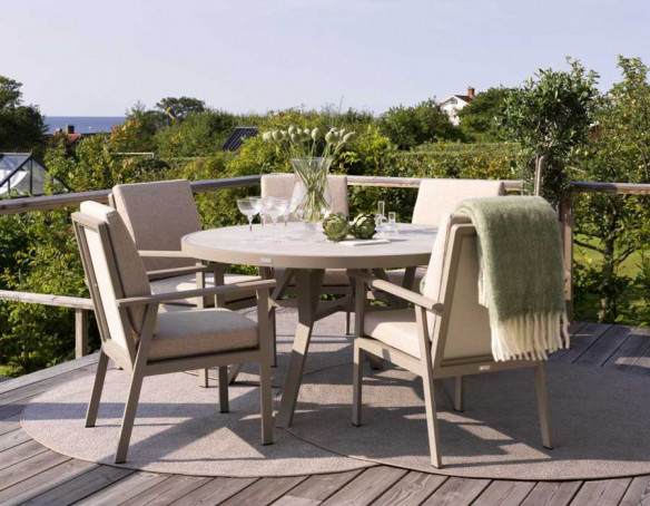 Samvaro havestol har en afslappende hældning, som fungerer godt til både måltider og afslapning.
